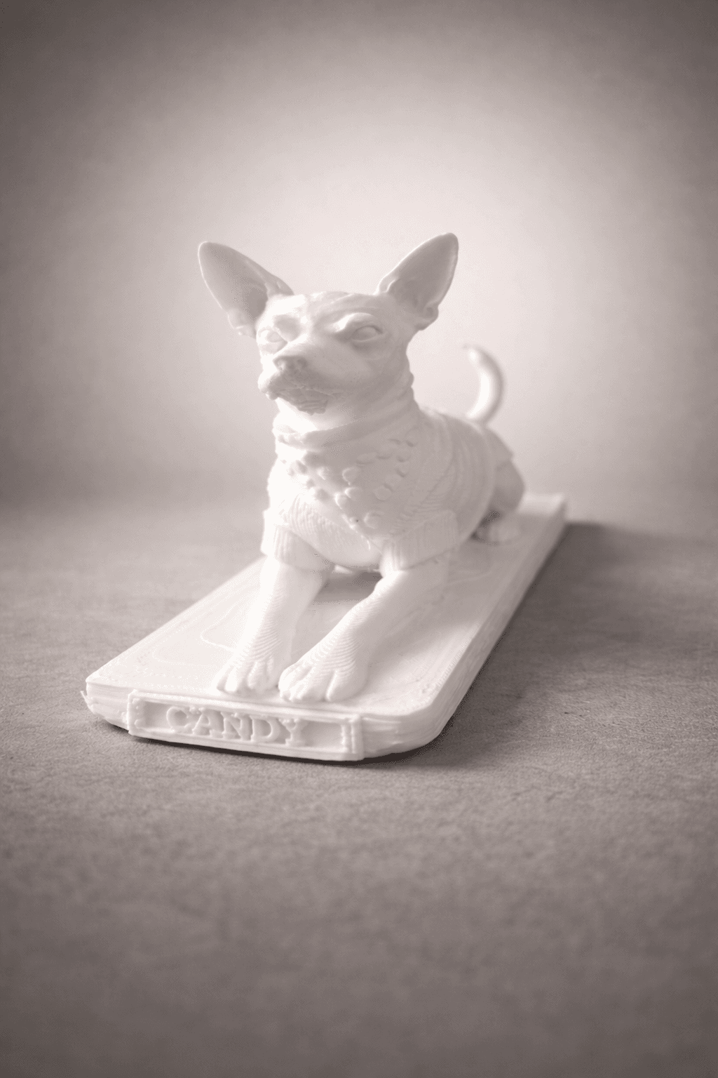 Inspired by real pets, this sculpture can be used as a decorative piece, a memorial for a beloved dog, or a symbolic representation of the bond between humans and animals.