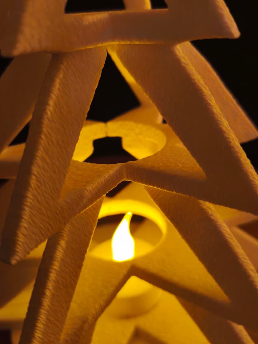 Silent Glow is a minimalist, single-color 3D-printed Christmas tree designed for warm, ambient lighting using a standard LED tealight. Its layered geometric structure creates a striking silhouette while remaining easy to print and assemble — perfect for holiday decor, tabletop displays, or cozy winter evenings.